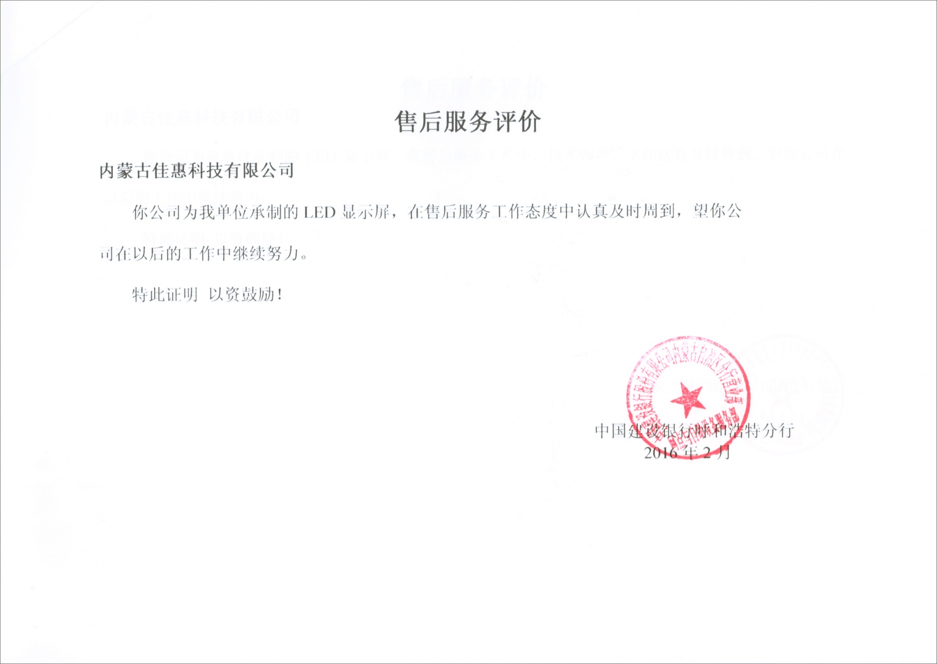 下一條中國建設銀行內蒙古分行巴彥淖爾優質服務證書
