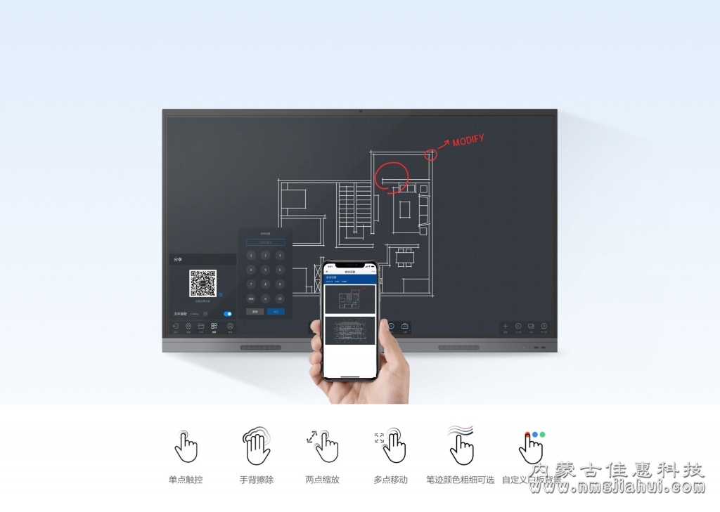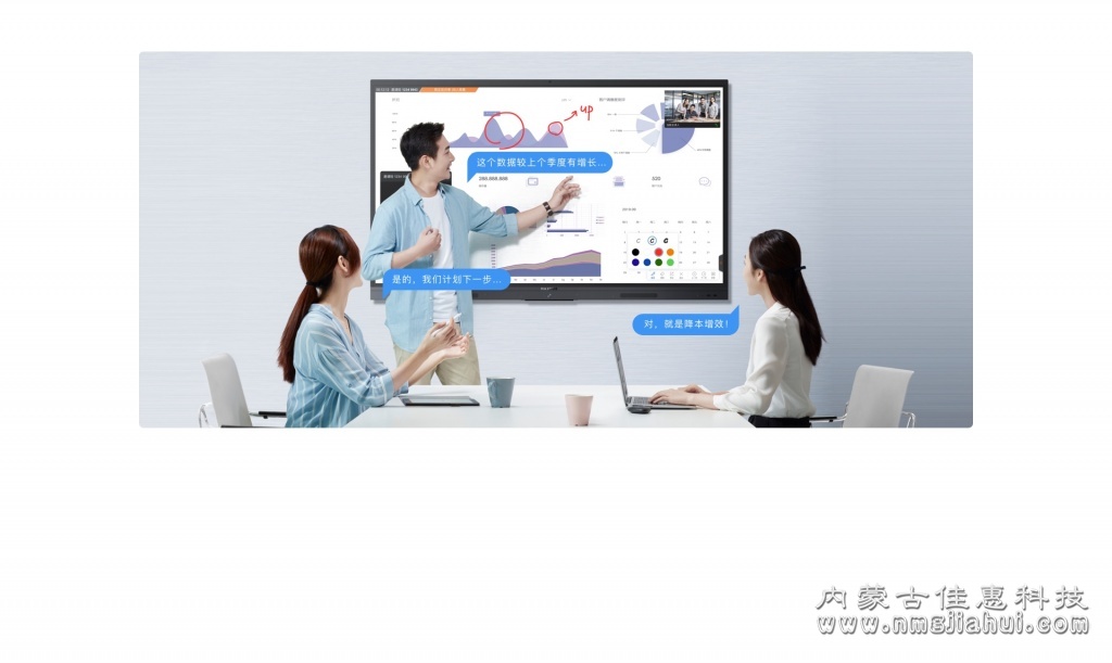 會議平板集投影、幕布、電子白板、廣告機、電腦、麥克風、音響等產品功能于一體,滿足現代企業的本地討論、演講匯報、企業培訓、視頻會議等需求的同時,更顯現代會議空間科技之美。